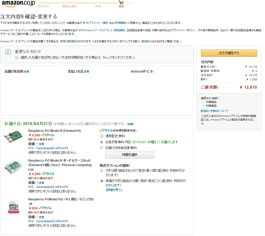 「ボード&ケースセット」と「ヒートシンク」を買うと安くなります。